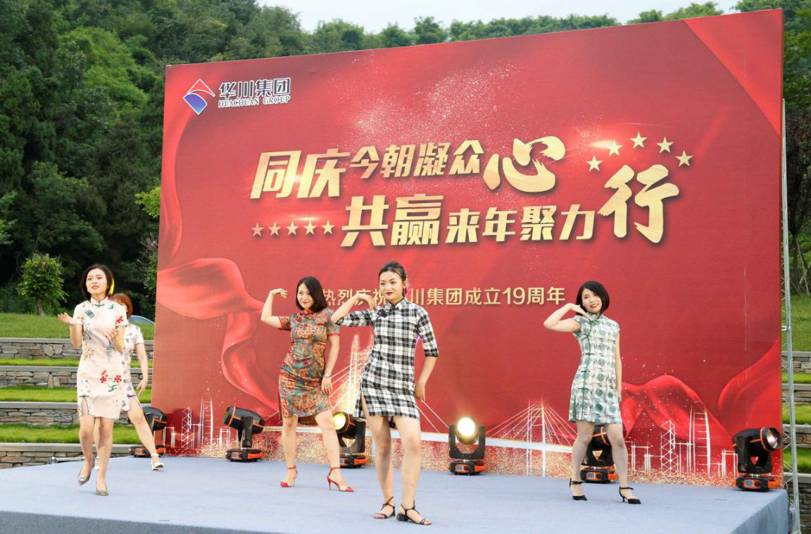 晚上,農(nóng)業(yè)總部基地?zé)艋痨陟?,集團(tuán)19周年慶典晚會(huì)在這里舉行。作為十九周年與二十周年的連接節(jié)點(diǎn),今晚過后將迎來集團(tuán)成立二十周年華誕,黨委副書記發(fā)布《關(guān)于慶祝集團(tuán)成立二十周年氛圍營造工作的通知》,副總裁熊文發(fā)布《休養(yǎng)度假專項(xiàng)福利方案》。發(fā)布會(huì)后,一曲《盛世華誕》鼓舞劃破夜空,激烈昂揚(yáng)鼓聲將拉開了慶典的序幕?!督裉焓悄愕纳铡?,通過詞語改編,為集團(tuán)送上了美好的生日祝福;群舞《別樣風(fēng)華》,通過集團(tuán)女干部與文工團(tuán)溫婉柔美,猶如一幅曼妙的畫卷;朗誦加合唱的節(jié)目《華川力量》,字字鏗鏘,展示出華川人血脈里流淌的豪邁情懷和磅礴的力量。伴隨著晚風(fēng)習(xí)習(xí),周年慶典進(jìn)入尾聲,在《華川之歌》的歌聲中,大家自發(fā)走上舞臺,齊聲合唱,伴隨著熟悉的曲調(diào),大家連連歡呼,為本次慶典劃上了圓滿的句號。