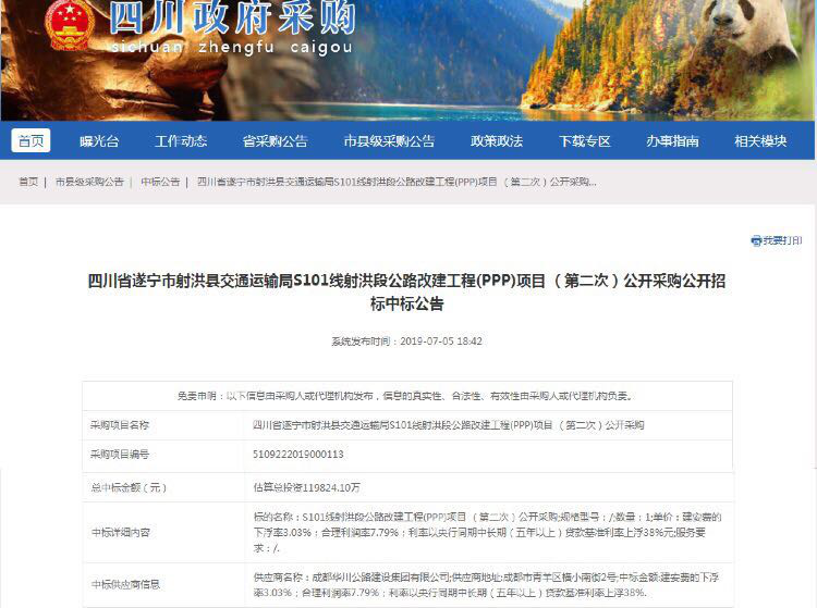 近日,集團成功中標四川省S101線射洪段公路改建工程(PPP)項目。7月5日,四川政府采購網正式發(fā)布中標公告。