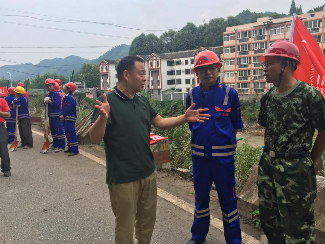 大邑縣交通局副局長陳建偉與集團應急搶險隊討論搶險方案