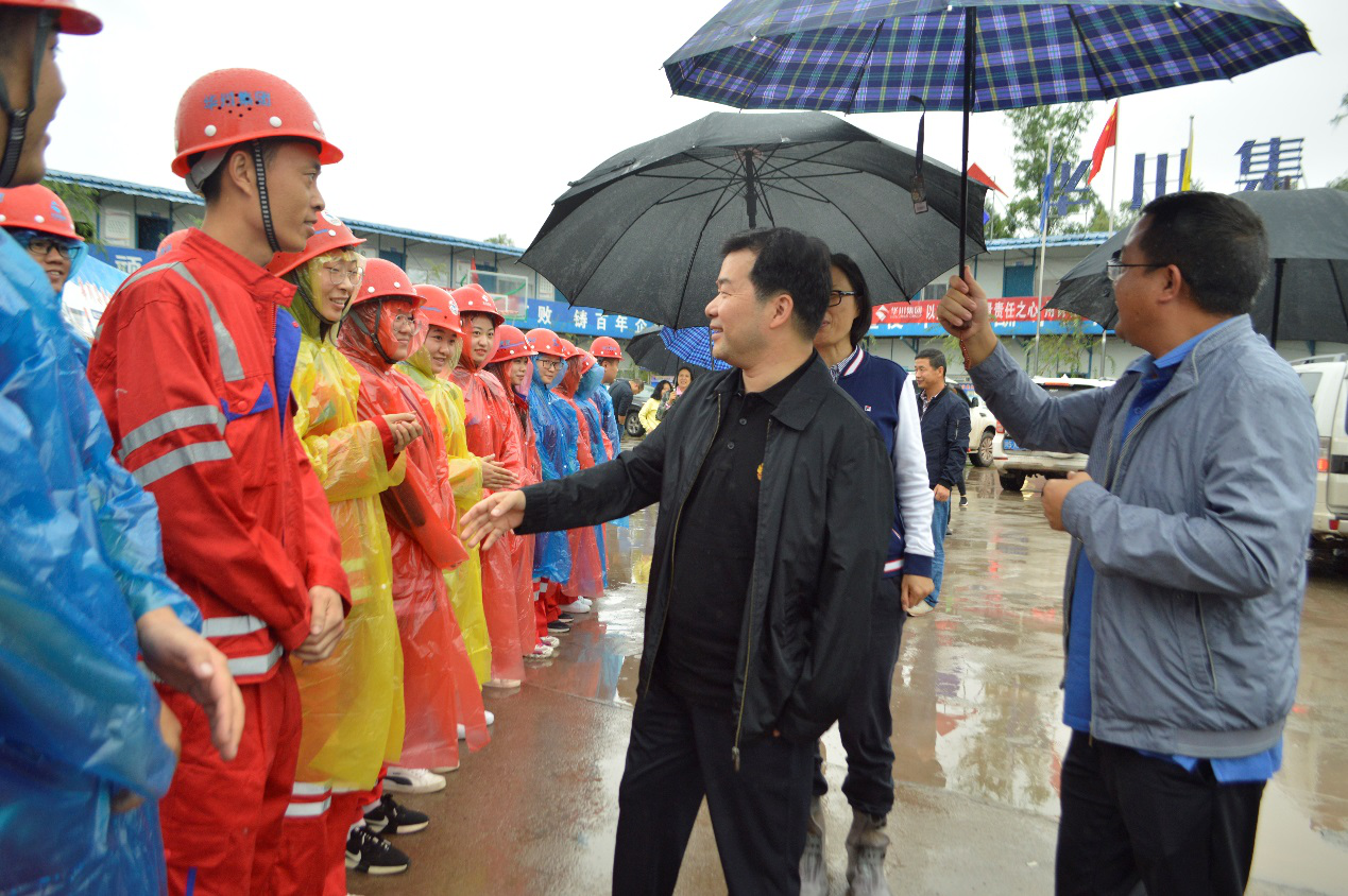 9月17日,集團黨委書記、董事長、總裁謝應(yīng)文、常務(wù)副總裁駱曉紅等領(lǐng)導率集團各職能部門負責人,在營達項目向年底通車目標發(fā)起總攻、決戰(zhàn)決勝的關(guān)鍵時刻,冒雨深入營達高速項目施工一線現(xiàn)場督導慰問。營達公司總經(jīng)理謝應(yīng)武及參建單位負責人等陪同。