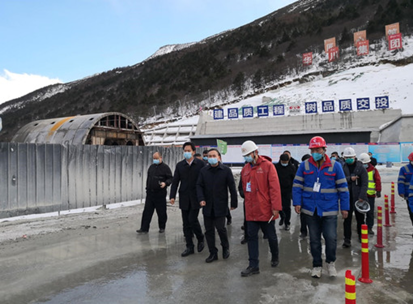 國道道318線康定折多山隧道公路工程隧址區(qū)海拔標(biāo)高3600米至4600米,年極端最低氣溫達(dá)-23.7℃,是是川藏南線在甘孜州境內(nèi)的重要節(jié)點(diǎn)。在施工條件十分惡劣的情況下,工程進(jìn)度仍然保持穩(wěn)中向前。葉寒冰副省長一行走進(jìn)項(xiàng)目現(xiàn)場,調(diào)研檢查防疫措施落實(shí)情況,了解復(fù)工和項(xiàng)目推進(jìn)情況。他強(qiáng)調(diào),在復(fù)工過程中要認(rèn)真貫徹習(xí)近平總書記在統(tǒng)籌推進(jìn)新冠肺炎疫情防控和經(jīng)濟(jì)社會發(fā)展工作部署會議上的重要講話精神,要做好疫情防控工作的同時,科學(xué)有序推進(jìn)復(fù)工,切實(shí)保證好施工安全和工程質(zhì)量