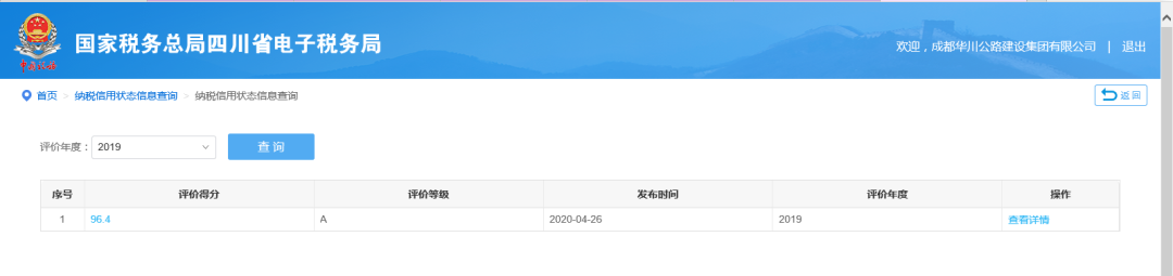 集團獲2019年度納稅信用等級“A”級