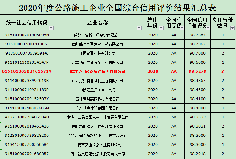 集團(tuán)連續(xù)四年榮獲交通運(yùn)輸部公路施工企業(yè)全國綜合信用評價(jià)“AA”級,得分98.53分,再創(chuàng)歷史新高。