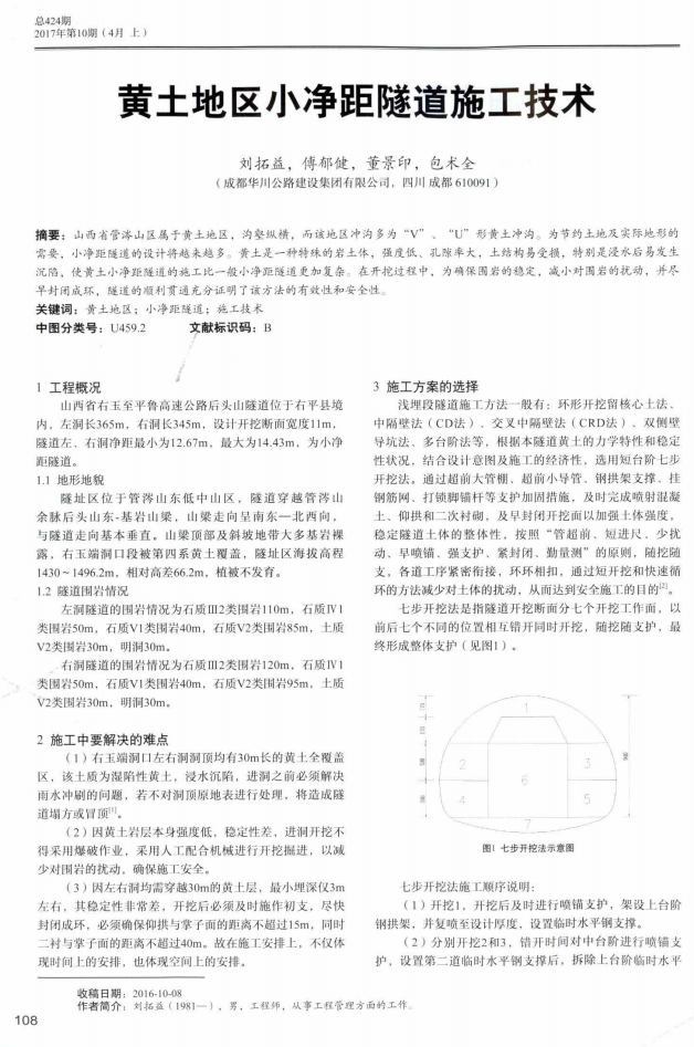 5月12日下午,山西右平項目部收到來自中央級期刊《交通世界》(旬刊)編輯部寄來的學術(shù)論文刊登賀信,祝賀由成都華川公路建設(shè)集團有限公司山西項目部項目總工程師劉拓益,項目副經(jīng)理董景印、包術(shù)全,項目副總工傅郁建合作的學術(shù)論文《黃土地區(qū)小凈距隧道施工技術(shù)》被采用發(fā)表,該項學術(shù)論文的發(fā)表為集團公司在科技成果方面再次添磚加瓦,同時表明了山西項目在科技成果的創(chuàng)新工作上再上了一個新的臺階。